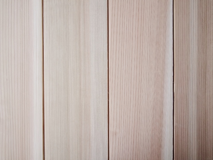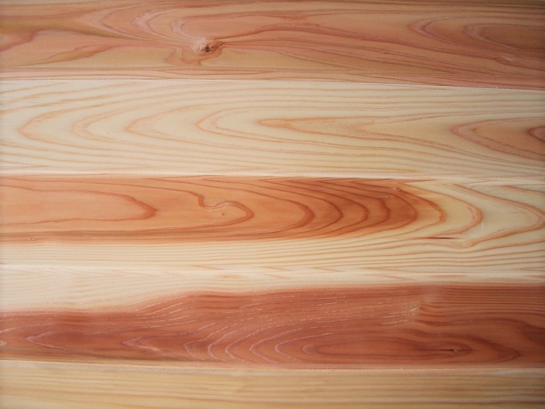 国産の秋田杉は木目が美しく白太と赤みの濃淡がはっきりしています。同じように濃淡のあるレッドシダーと比べて価格が安く入荷も安定しています。