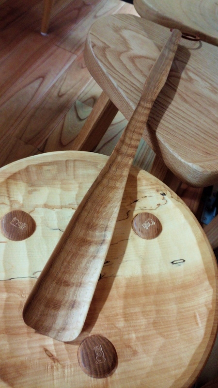 普段捨ててしまっている材料ですが草間さんにかかれば高級な靴ベラになります。